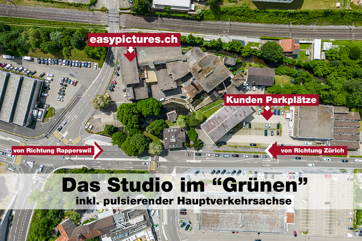 Mein Studio (Bertschikerstrasse 2, 8620 Wetzikon) befindet sich an der Hauptstrasse und ist somit gut von allen Seiten her zu erreichen. Zu Rushhour-Zeiten ist jedoch mit ein paar Minuten Stau zu rechnen! In der Bildergalerie und in diesem Video findest du noch die Wegbeschreibung vom Parkplatz in mein Studio. WICHTIG Bitte die Parkplätze an der Zürcherstrasse 47 benützen! Temporäres Beladen und Entladen von Material kann man auch an der Bertschikerstrasse 2, sofern die Fahrzeuge danach wieder weggefahren werden.